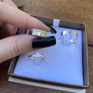Aliança de Prata 8mm com 15 pedras personalizada Iniciais
