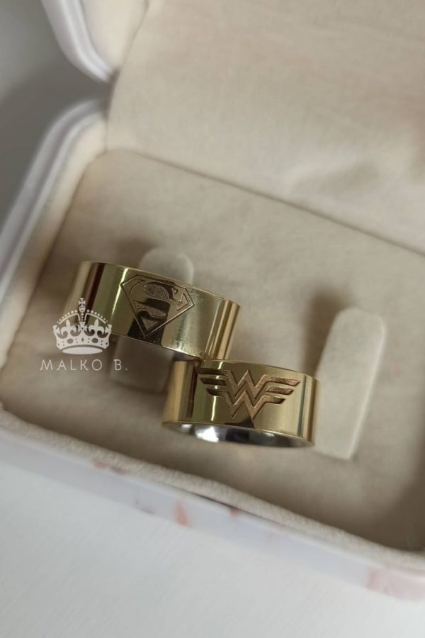 Aliança de Moeda 8mm Super Herois com 15 pedras